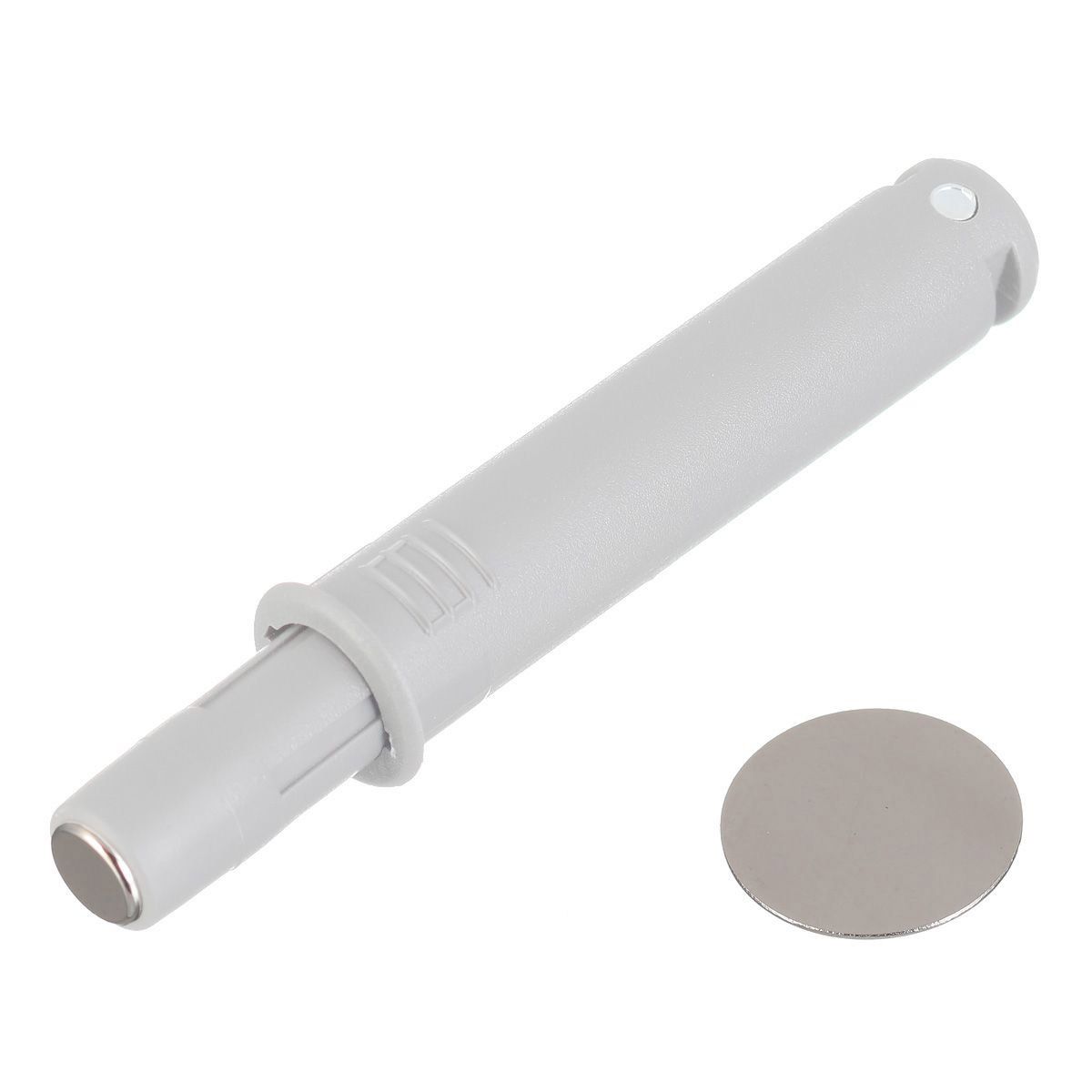 товара Выталкиватель AM-OWM короткий с магнитным окончанием, серый - приспособление для открытия створки фасада или выдвижения ящика без использования мебельной ручки. Вы нажимаете на дверцу шкафа или лицевую сторону ящика, и срабатывает система Push to open. Благодаря магнитному окончанию цилиндра-демпфера, осуществляется дополнительная фиксация дверцы или ящика в закрытом состоянии. Выталкиватель устанавливается посредством врезки в торец корпуса мебельной конструкции. КОМПЛЕКТАЦИЯ Цилиндрический выталкиватель – 1 шт. Металлическая круглая ответная планка – 1 шт.