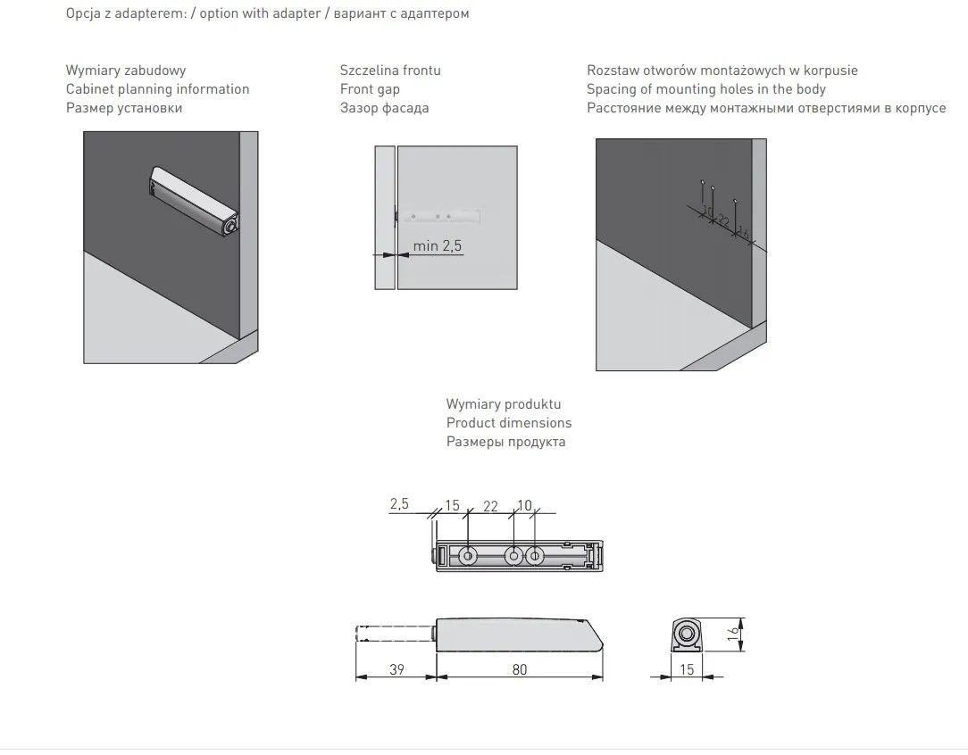 Выталкиватель накладной GTV Salto Nova длинный с каучуковым окончанием, серый - функциональная фурнитура, предназначенная для открывания дверцы шкафа или выдвижения ящика в отсутствии мебельной ручки. Вы нажимаете на створку/ящик и открываете/выдвигаете фасад/ящик. Способ монтажа выталкивателя - накладной. ПРЕИМУЩЕСТВА Каучуковый наконечник способствует бесшумному и мягкому закрыванию фасада. Сертификат SGS, подтверждающий высокое качество выталкивателя в соответствии с европейскими стандартами, а также проведенные испытания, гарантирующие 100 000 рабочих циклов. Минимальный зазор между фасадом и корпусом – 2,5 мм. КОМПЛЕКТАЦИЯ Выталкиватель – 1 шт. Адаптер – 1 шт. Крепление – 1 шт. Шурупы для монтажа – 2 шт.