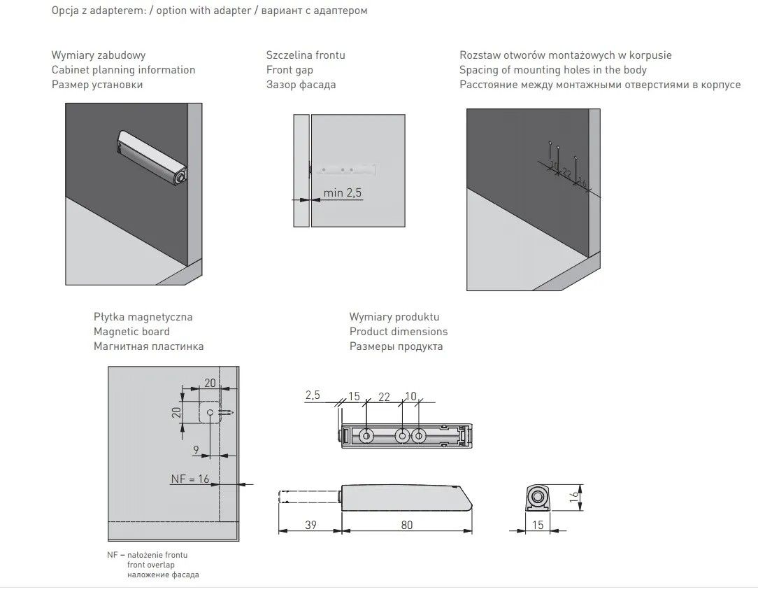 Выталкиватель накладной GTV Salto Nova длинный с магнитным окончанием, белый - функциональная фурнитура, предназначенная для открывания дверцы шкафа или выдвижения ящика в отсутствии мебельной ручки. Вы нажимаете на створку/ящик и открываете/выдвигаете фасад/ящик. Способ монтажа выталкивателя - накладной. ПРЕИМУЩЕСТВА Магнитный наконечник обеспечивает дополнительную фиксацию дверцы или ящика в закрытом состоянии. Сертификат SGS, подтверждающий высокое качество выталкивателя в соответствии с европейскими стандартами, а также проведенные испытания, гарантирующие 100 000 рабочих циклов. Минимальный зазор между фасадом и корпусом – 2,5 мм. КОМПЛЕКТАЦИЯ Выталкиватель – 1 шт. Адаптер – 1 шт. Крепление – 1 шт. Магнитная пластина – 1 шт. Шурупы для монтажа – 2 шт.