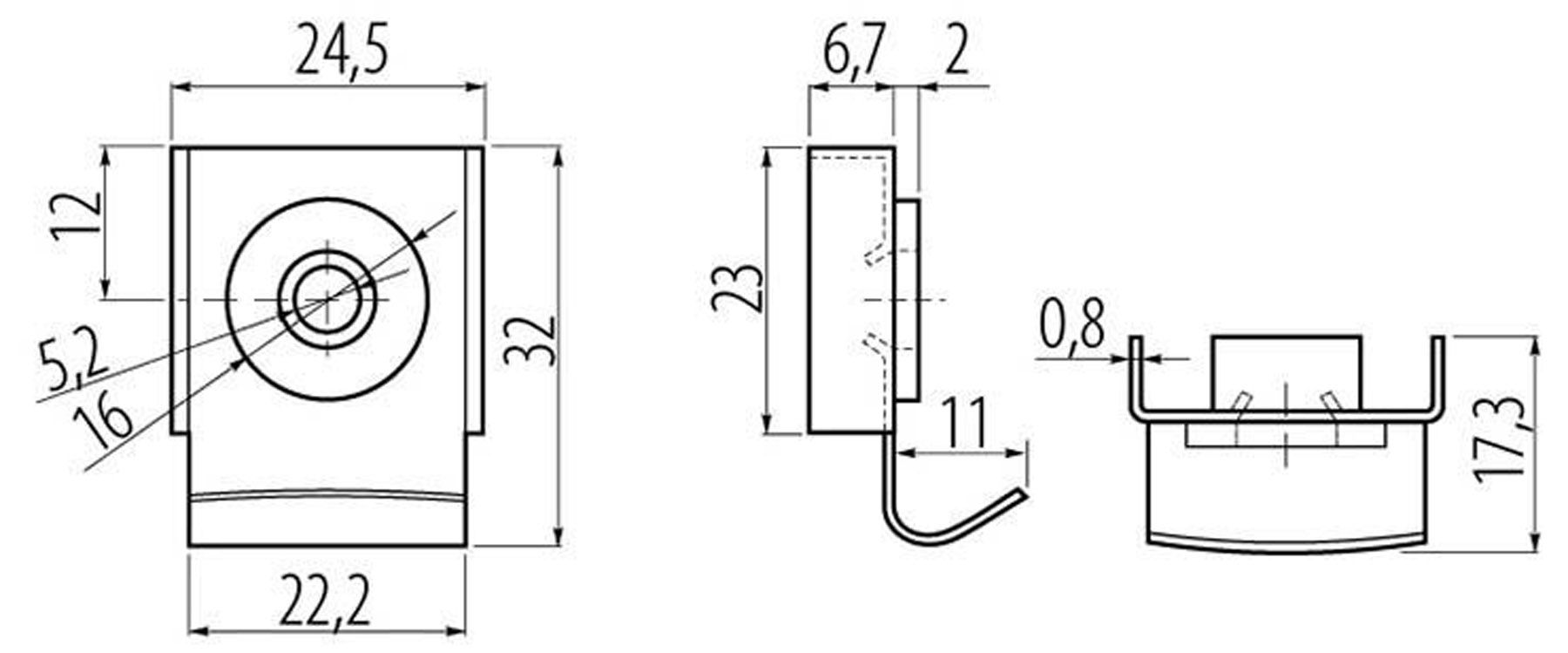 Держатель для крепления зеркала с полукруглыми углами вплотную к стене.