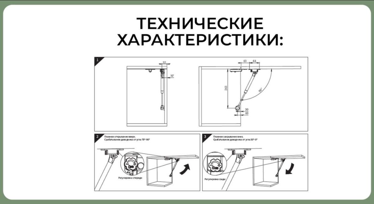 Тип закрывания/открывания: вверх / Soft Closing - механизм плавного закрывания и открывания
