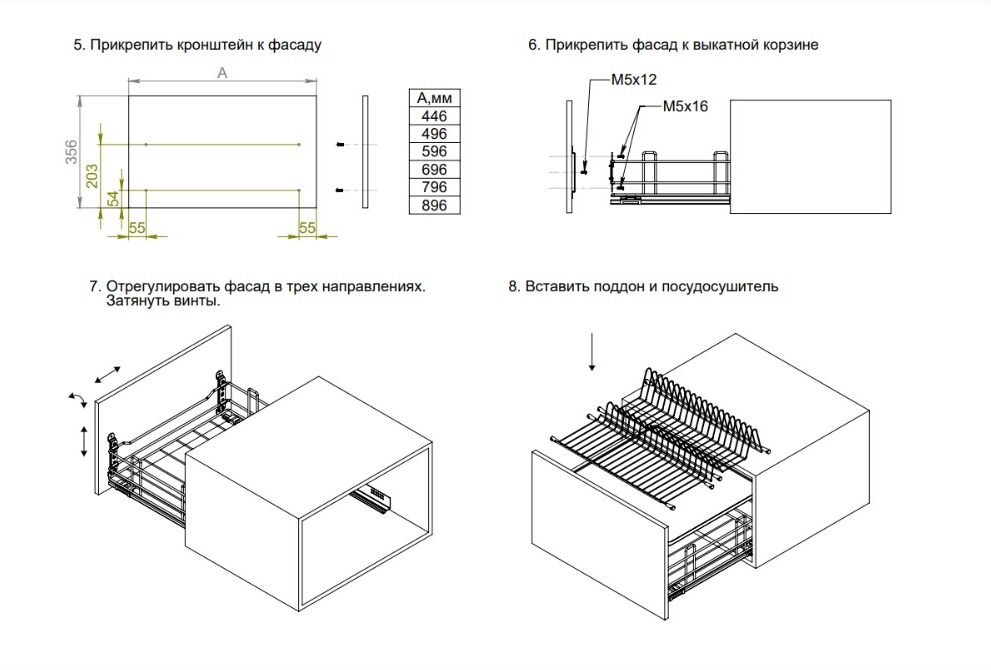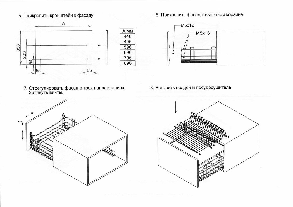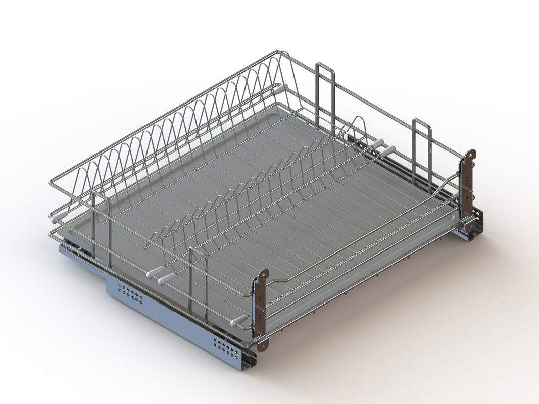 Оснащена системой slowmotion и поддоном, удерживающим стекающую влагу, что позволяет располагать в ней посуду, даже не дожидаясь её полного высыхания, максимально рационально использовать внутреннее пространство кухонного гарнитура. Жесткое крепление встроенное в корзину обеспечивает возможность использования более высоких фасадов.