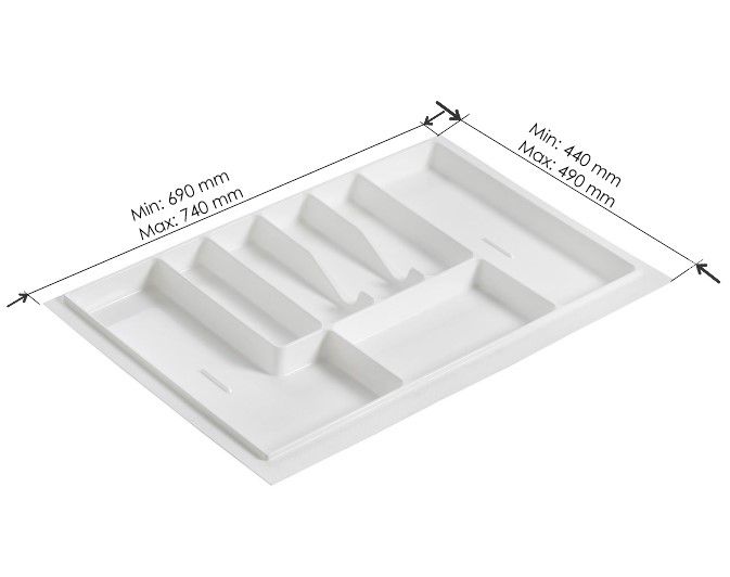 Лоток L 800 мм белый – кухонный аксессуар, необходимый практически в любом доме. Лоток позволяет удобно рассортировать внутри кухонного ящика ложки, вилки, ножи и другие постоянно используемые столовые приборы. Лоток специально подбирается под размеры конкретного ящика стола или кухонного гарнитура.