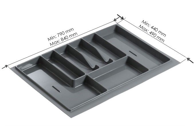 Лоток L 900 мм серый – кухонный аксессуар, необходимый практически в любом доме. Лоток позволяет удобно рассортировать внутри кухонного ящика ложки, вилки, ножи и другие постоянно используемые столовые приборы. Лоток специально подбирается под размеры конкретного ящика стола или кухонного гарнитура.
