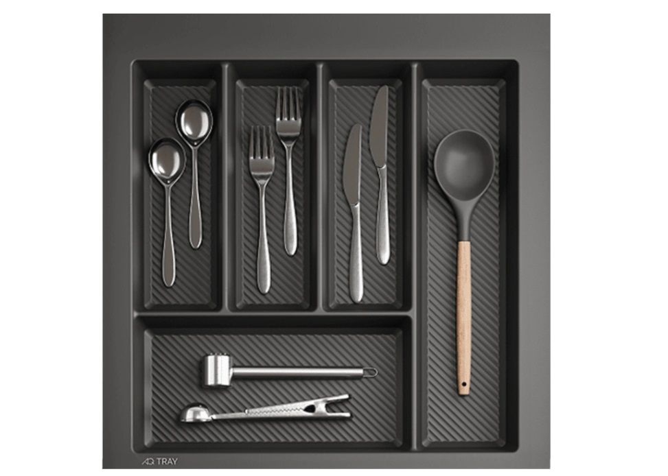 Невероятная эргономика лотка AQ TRAY обеспечит удобное хранение столовых приборов и аксессуаров на вашей кухне. Дизайн лотка AQ TRAY, разработанный в Новой Зеландии, совмещает в себе все лучшие качества – эстетику и эргономику – всё то, что делает хранение и пользование кухонными аксессуарами и столовыми приборами ещё более удобными.