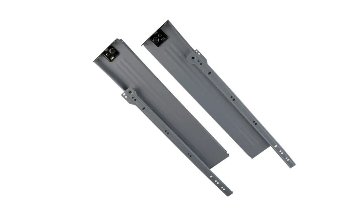 Металбоксы – это система выдвижения мебельного ящика, основанная на работе роликовых направляющих. Комплект металлобокса состоит из двух металлических боковых стенок с роликами в верхней их части и самих направляющих, которые крепятся к каркасу мебели
