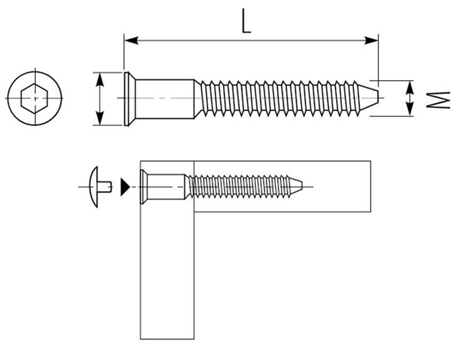 товара Конфирмат 6,4х50 под шестигранник - крепеж, используемый для соединения мебельных деталей. Для установки конфирмата в деталях предварительно сверлятся отверстия, а сам крепеж закручивается при помощи шуруповерта или ключа для стяжки.