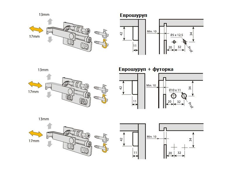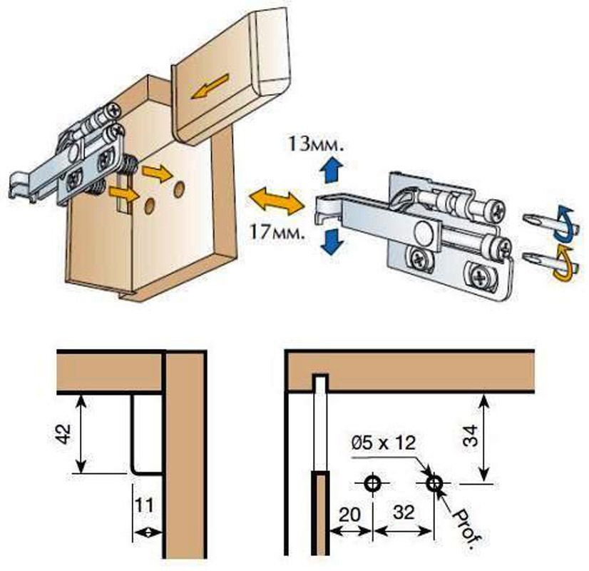 Пределы регулировки: по высоте – 13 мм, по глубине – 17 мм
