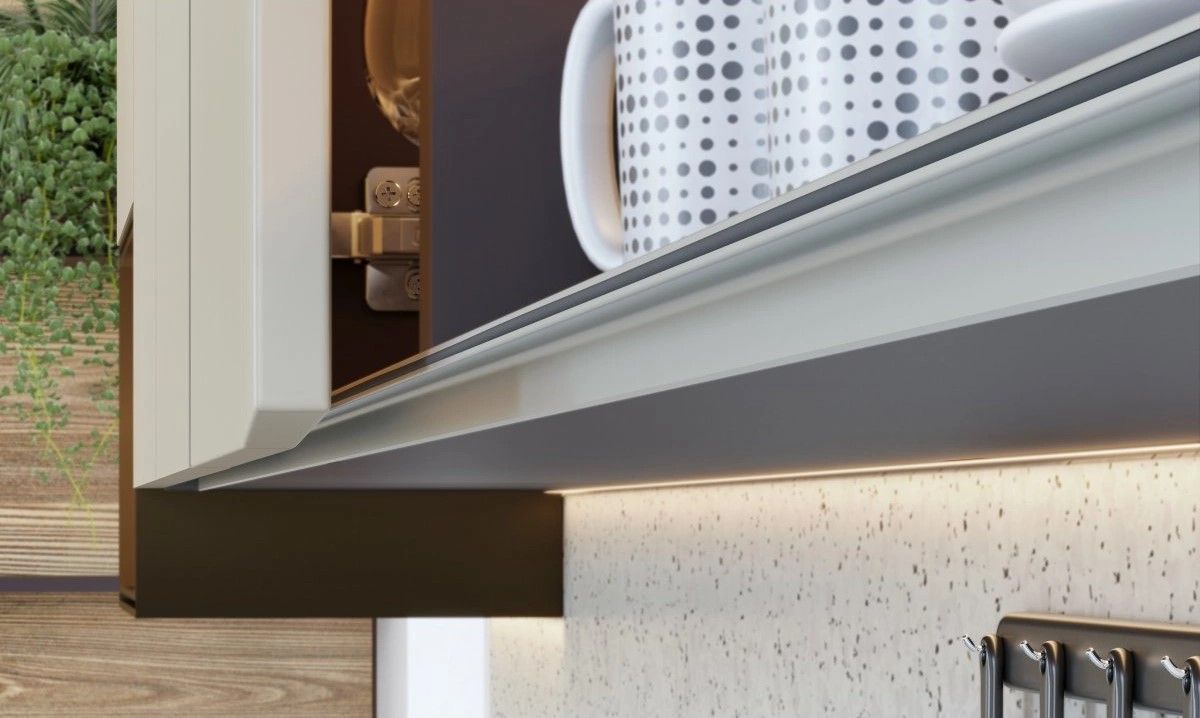 Профиль VELLO для верхних шкафчиков, для плиты 16мм, алюминий, 3м - современная система обустройства интерьера, позволяющая создать кухонный гарнитур без традиционных мебельных ручек. В наши дни дизайн без ручек очень популярен, поскольку он придает кухне современный и элегантный вид. VELLO позволяет открывать и закрывать шкафы, ящики и другие кухонные элементы с помощью скрытых профилей, которые незаметны и не нарушают минималистичный вид пространства. Помимо эстетики, решения без ручек имеют и практическое применение. Без ручек кухню становится легче содержать в чистоте, поскольку на их поверхности не скапливается мусор и пыль. Кроме того, отсутствие выступающих элементов снижает риск случайного зацепления за них и облегчает перемещение по кухне. ПРЕИМУЩЕСТВА Изготовлен из алюминия, пригодного для вторичной переработки. ВАЖНОЕ ДОПОЛНЕНИЕ Конструкция профиля позволяет установить резиновый уплотнитель диаметром 2.5 мм для мягкого соприкосновения с фасадом (приобретается отдельно).
