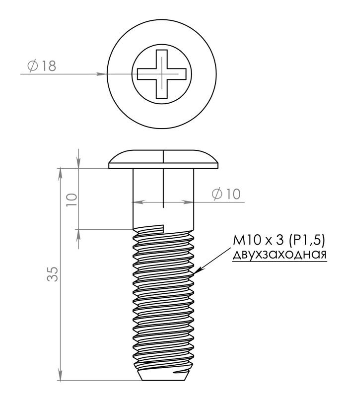 Тип крепления: двухзаходная резьба М10 с шагом 3 мм.