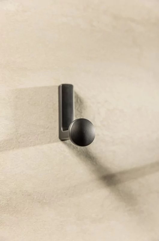 Крючок мебельный ARCO, черный матовый - функциональный элемент интерьера, предназначенный для хранения одежды и сумок. Однорожковые крючки характерны повешенной прочностью и могут быть использованы для массивных предметов одежды (шубы, куртки и т.п.). КОМПЛЕКТАЦИЯ Крючок - 1 шт.