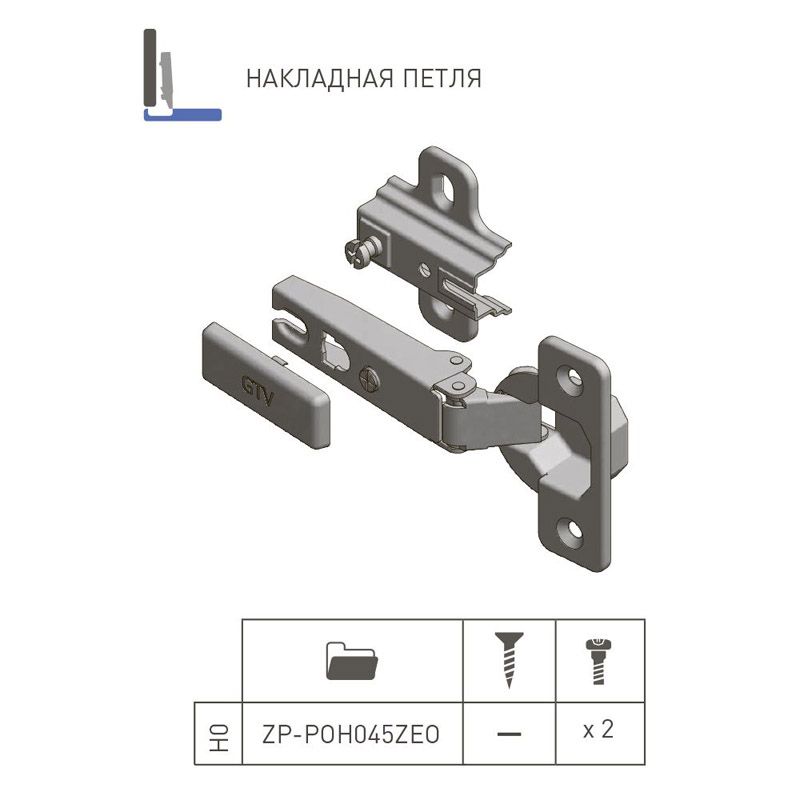 Петля накладная GTV ZP-POH045ZEO самооткрывающаяся с планкой H-0 с евро - механизм для навешивания фасада и его открывания посредством нажатия, без использования мебельной ручки. Петля работает совместно со специальным толкателем. КОМПЛЕКТАЦИЯ Петля – 1 шт. Ответная планка – 1 шт. Маскировочная накладка на плечо – 1 шт. Евровинт - 2 шт. ВАЖНОЕ ДОПОЛНЕНИЕ Шурупы для монтажа и толкатель (фиксатор самооткрывающийся) приобретаются отдельно.
