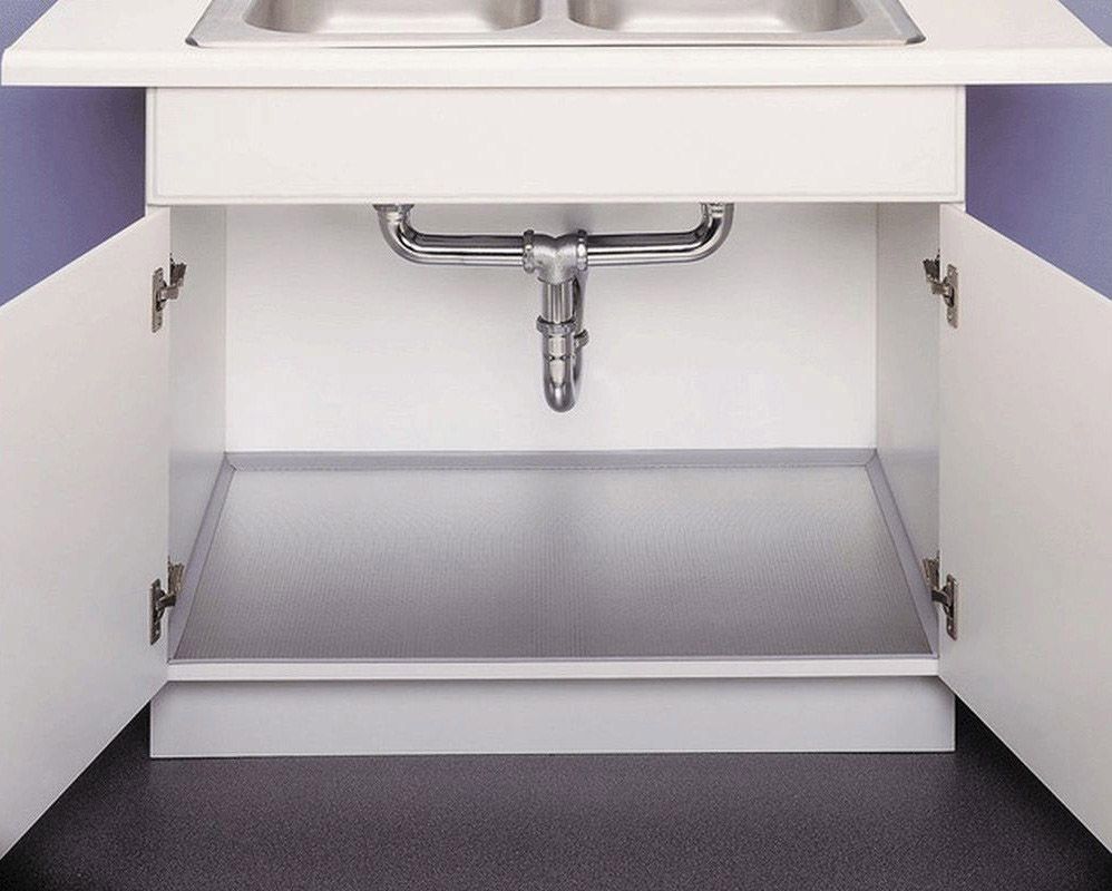 Поддон гигиенический алюминиевый для кухонной базы под раковину используется в качестве подставки для чистящих средств и мусорного ведра.