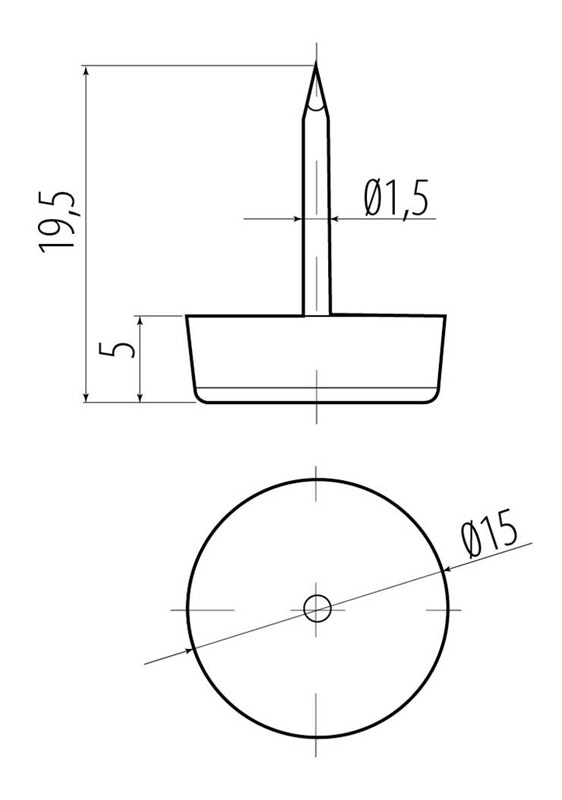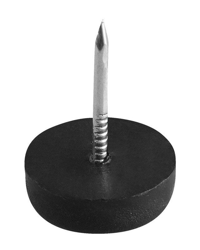 товара Подпятник на гвозде, черный, D15 мм - функциональная подкладка под нижний торец мебельного изделия, служащая для защиты напольного покрытия от повреждений при перемещении мебели, а также предохраняющая низ мебели от воздействия влаги. Подпятник крепится к мебели посредством вбивания.