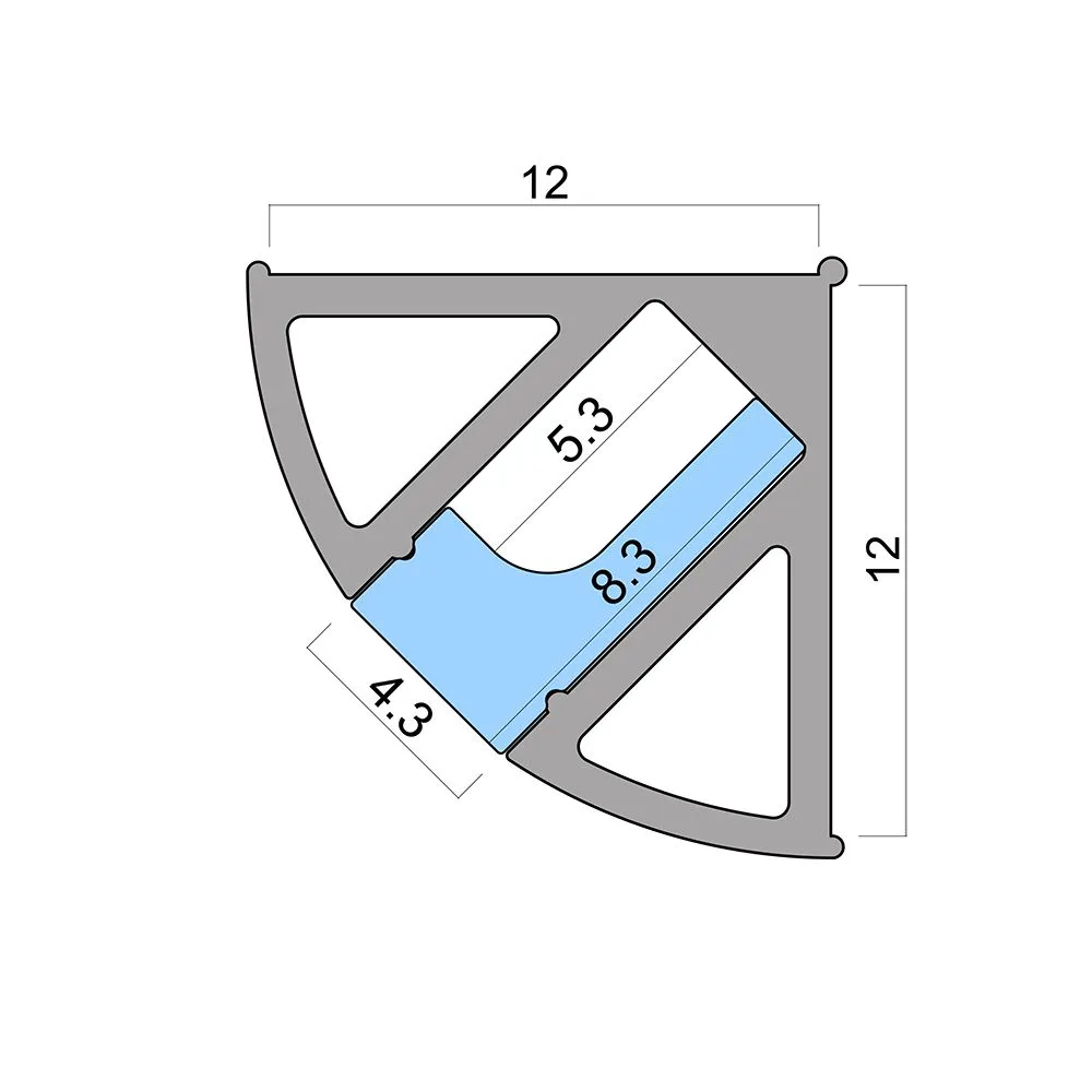 Угловой профиль представляет собой уголок размером 12*12 мм с силиконовым рассеивателем.