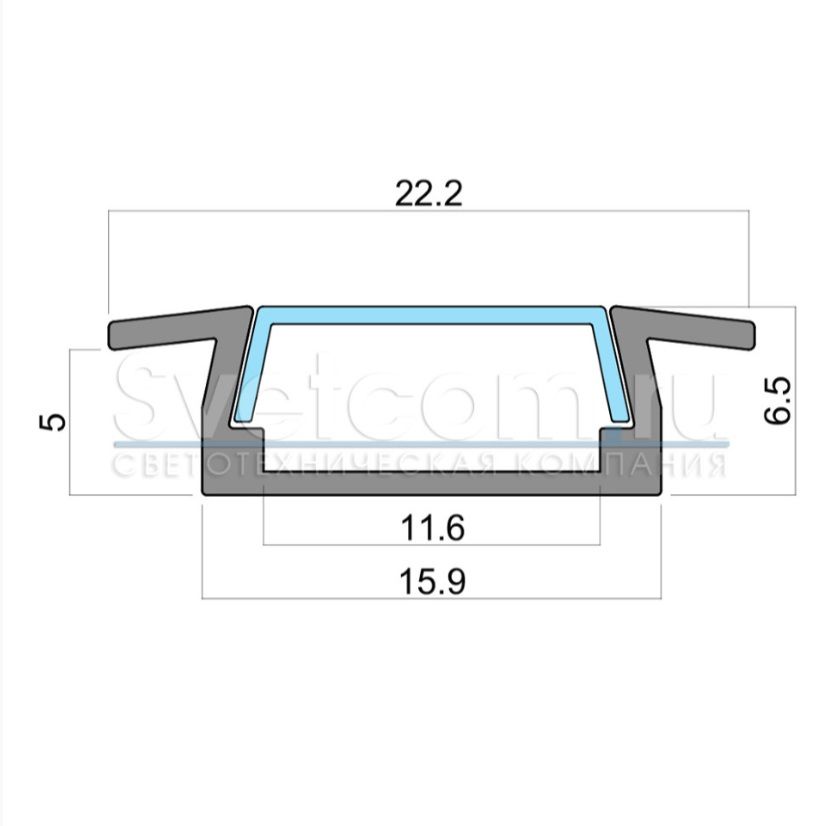 Профиль врезной 22*7*2000 алюминиевый для светодиодной ленты в комплекте с матовым экраном, 2 заглушки – короб, внутрь которого устанавливается LED-лента.