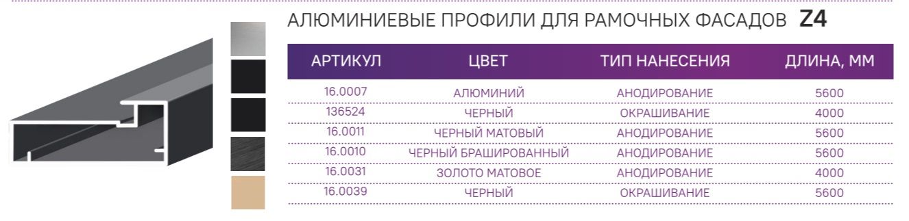 Мы наполнили ассортиментный портфель AQ алюминиевым профилем для рамочных фасадов Z и F серии, которые представлены в самых востребованных цветах: