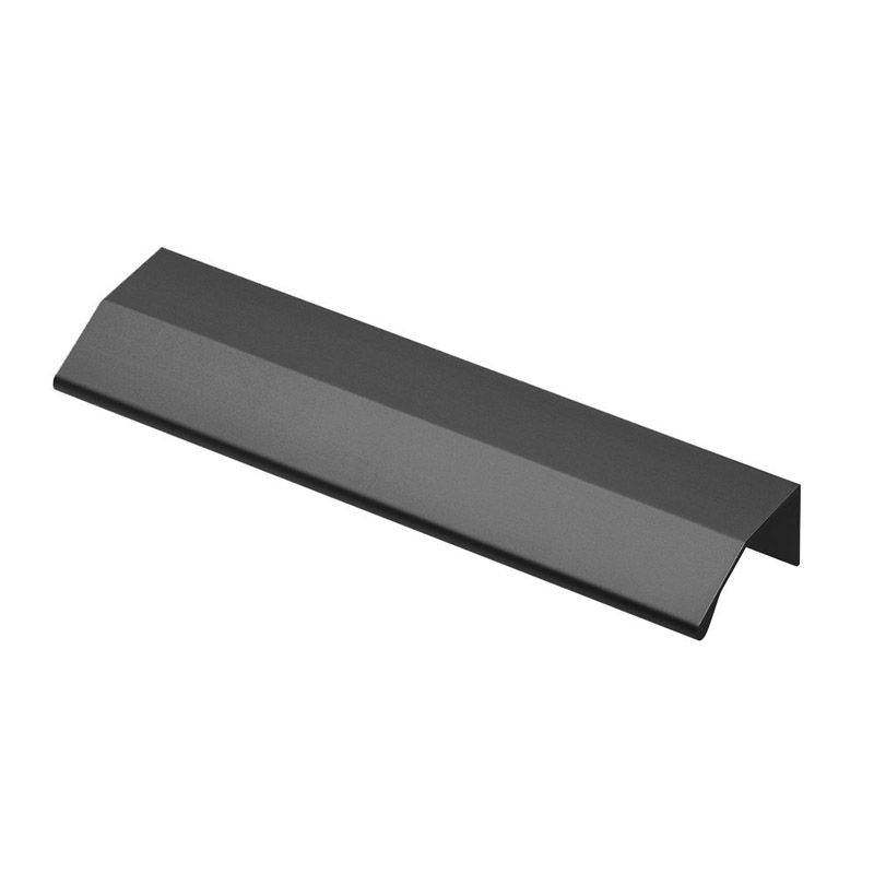 товара Ручка мебельная алюминиевая TREX L-3500 чёрный матовый - популярный вариант лицевой фурнитуры, для которого характерна простота конструкции и высокая надежность. При установке ручка накладывается на торец фасада. Данная товарная позиция поставляется в виде хлыста длиной 3,5 м, режется по месту.