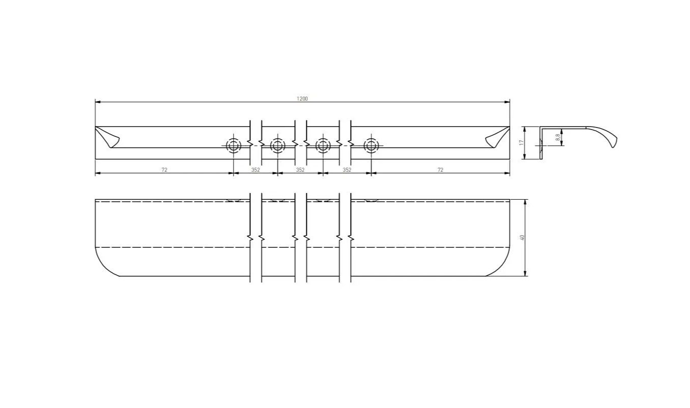 Ручка мебельная алюминиевая HEXA L-1200 мм, алюминий - популярный вариант лицевой фурнитуры, для которого характерна простота конструкции и высокая надежность. При установке ручка накладывается на торец фасада.