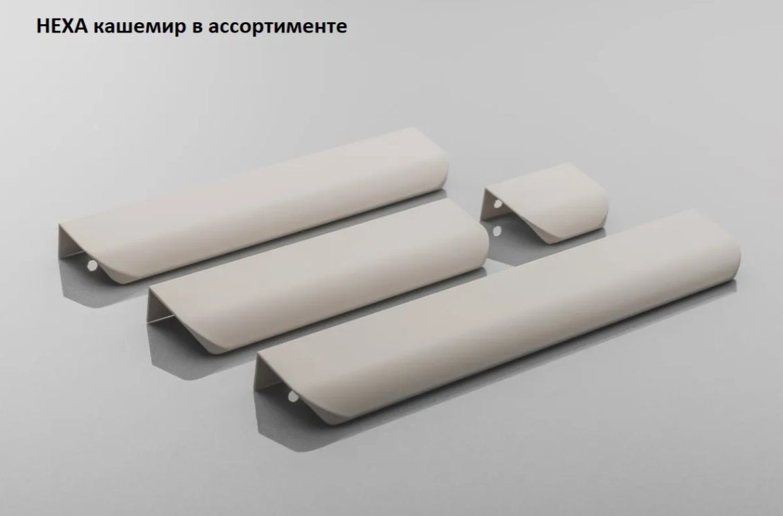 Ручка мебельная алюминиевая HEXA 32мм/50мм, кашемир- популярный вариант лицевой фурнитуры, для которого характерна простота конструкции и высокая надежность. При установке ручка накладывается на торец фасада.