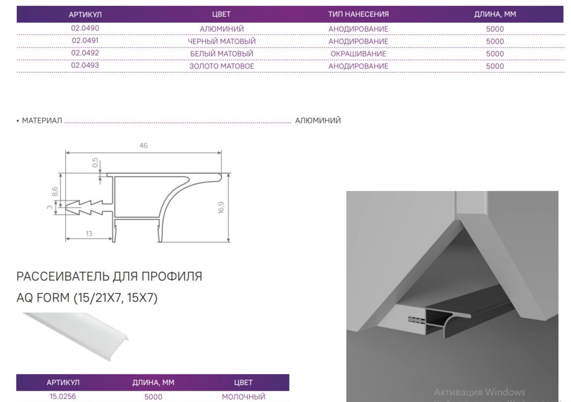 Профиль - L-образный;