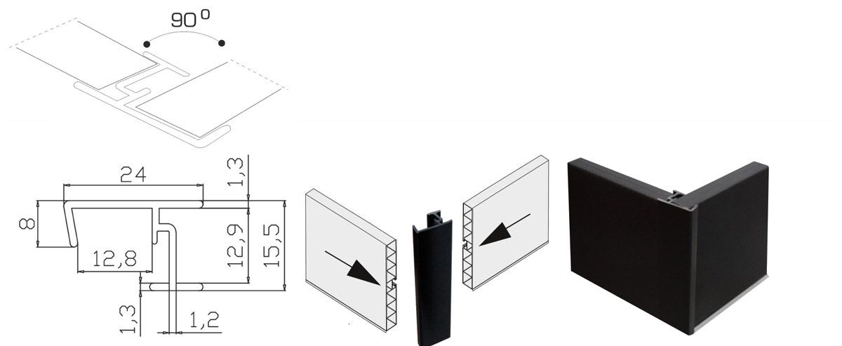 Угол универсальный 90гр для цоколя - элемент цокольной системы, предназначенный для соединения отрезков декоративной планки под углом в процессе монтажа.