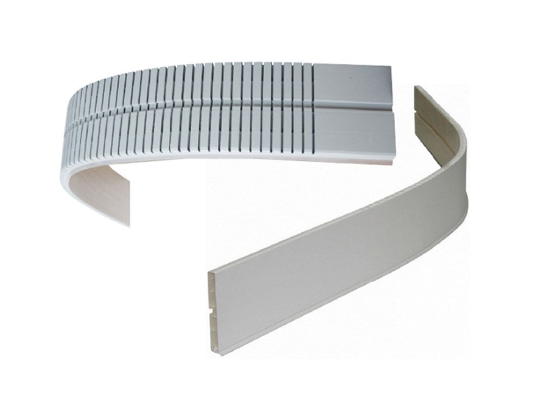 Радиусный элемент для цоколя ПВХ - изготавливается высотой 100 и 150мм, длиной 995мм. Профиль может принимать любую форму, что весьма актуально для кухонных тумб с изгибами и плавными закруглениями.