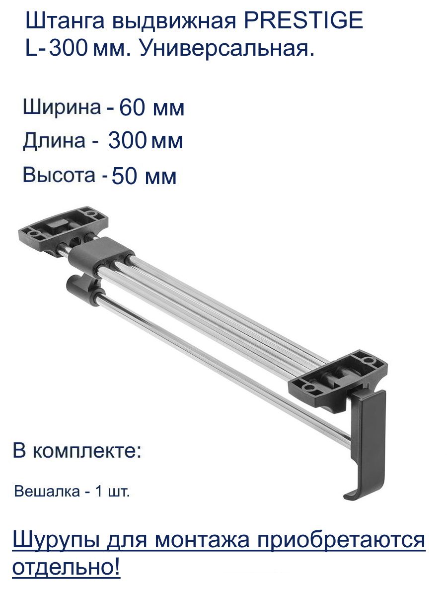 Штанга выдвижная PRESTIGE - вешалка для одежды, устанавливаемая внутри гардеробной. В зависимости от размера шкафа подбирается штанга определенной длины.