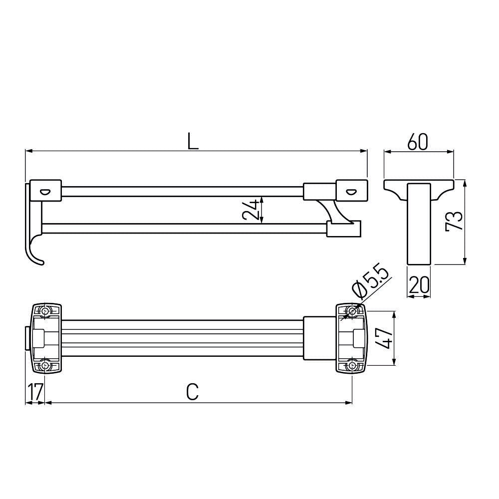 Штанга выдвижная PRESTIGE - вешалка для одежды, устанавливаемая внутри гардеробной. В зависимости от размера шкафа подбирается штанга определенной длины.