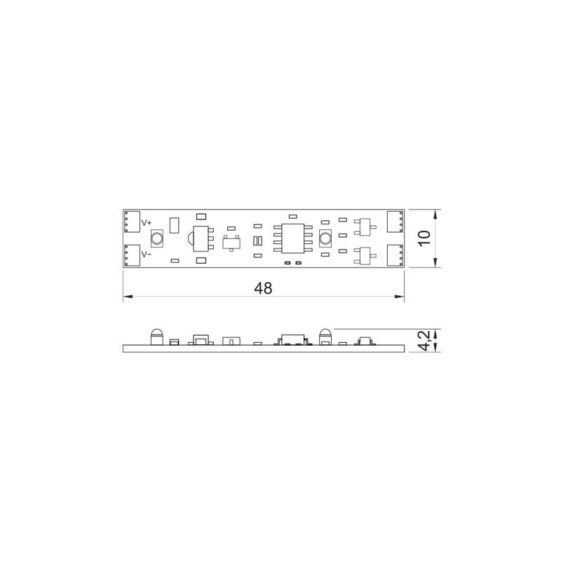 Малые габариты с установочной высотой 4,7 мм позволяют установить выключатель в большинство алюминиевых профиль (даже в сверхнизкие профили с плоскими диффузорами, как, например,гибкий профиль 1804L);