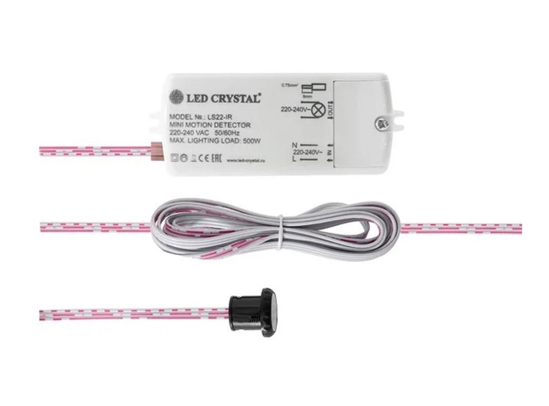 При поднесении руки к датчику светильник включается, при повторном ее поднесении -гаснет. Расстояние срабатывания до 50 мм.