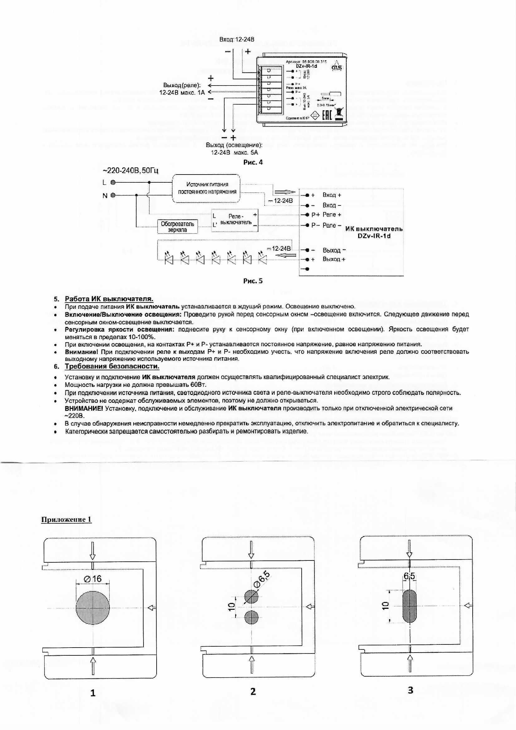 Инфракрасный выключатель для зеркала DZv-IR-1d управляет: