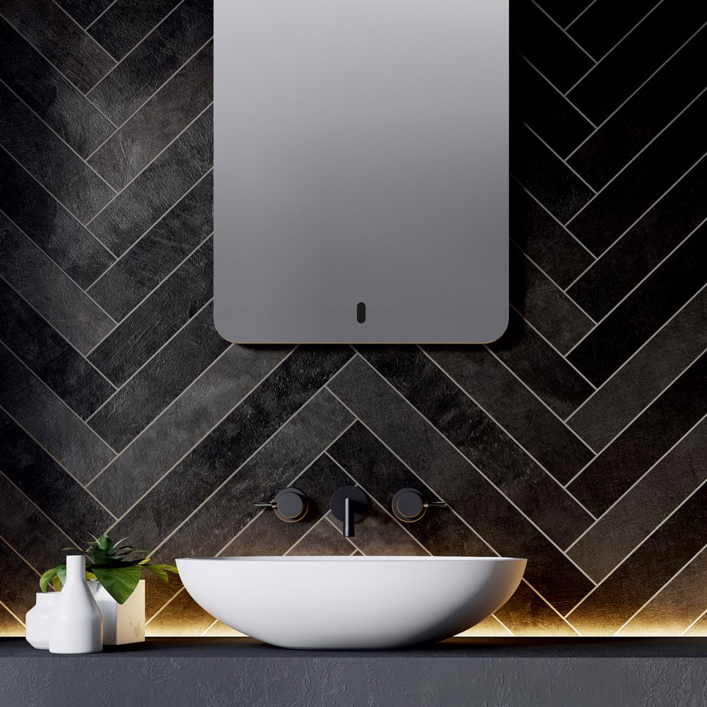 Для включения/выключения LED освещения, нужно провести рукой перед выключателем, в месте его установки, обозначенном на зеркале (сенсорное окно), расстояние срабатывания выключателя до 6 см.