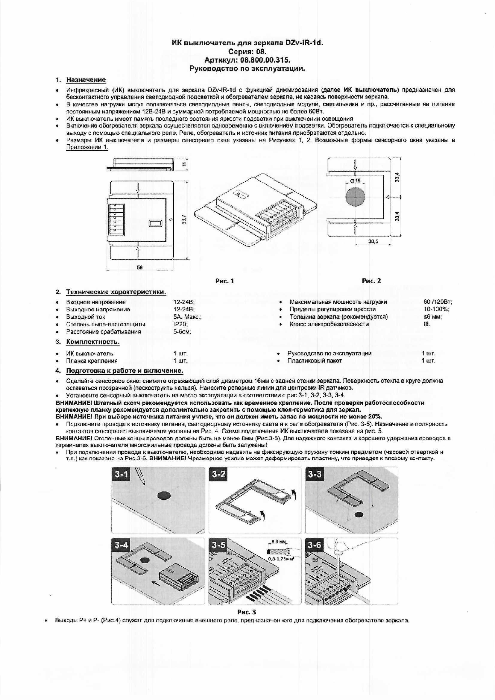 Инфракрасный выключатель для зеркала DZv-IR-1d с функцией диммирования – актуальное решение вопроса бесконтактного управления включением/ выключением и диммированием освещения, установленного на зеркале.