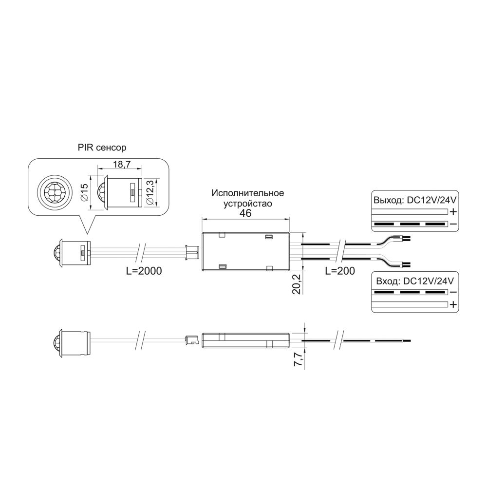 Мебельный выключатель PIR 12В/24В срабатывает на движение и состоит из исполнительного устройства и инфракрасного сенсора (PIR сенсор).
