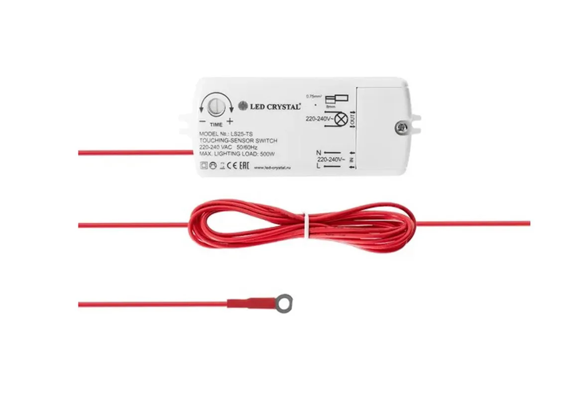 Сенсорный выключатель DKs-220-2 управляет включением/выключением света, посредством касания к сенсорному выводу. В качестве последнего используется специальная декоративная контактная группа для DKs-220-2 (в комплект не входит, приобретается отдельно).