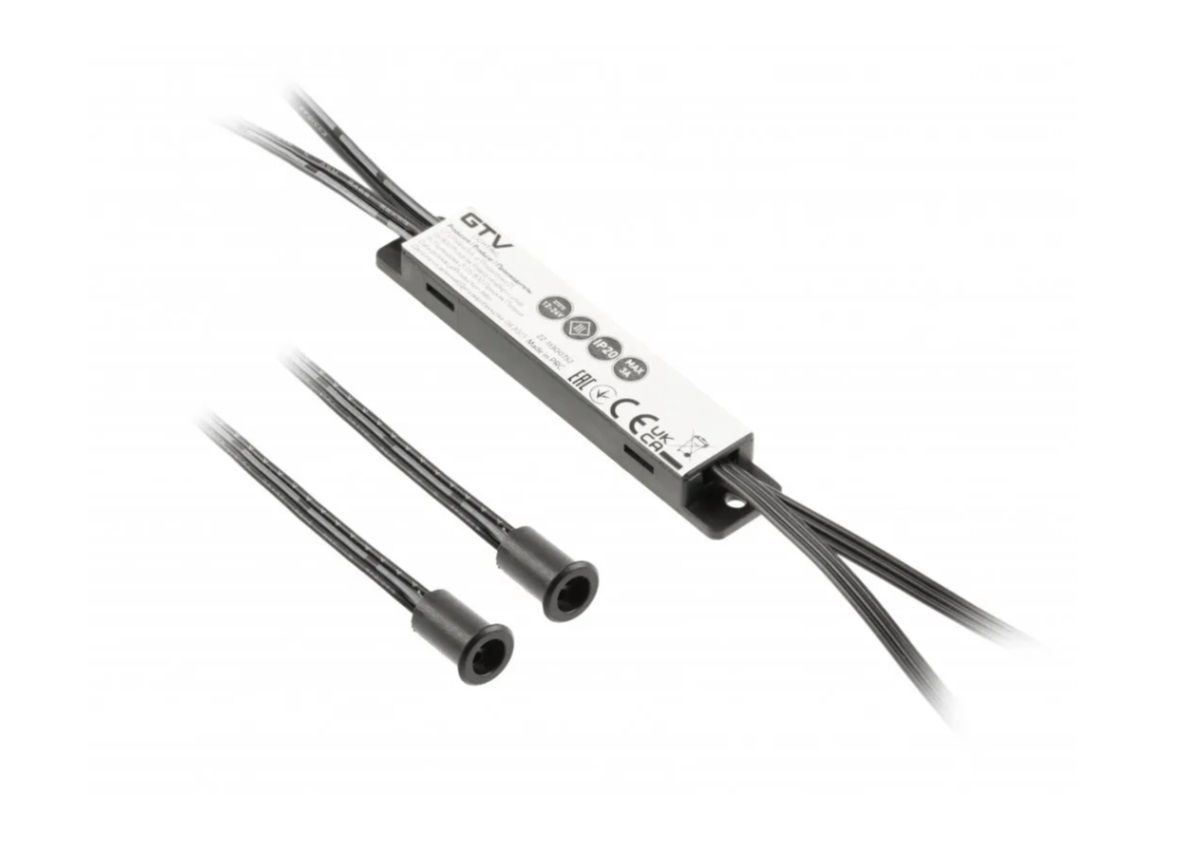 Выключатель бесконтактный MIKRO IR 2 12V/36W, 24V/72W, 2 датчика, кабели 2 м и 1,2 м, черный – устройство управления, посредством которого включается и выключается светильник. Прибор оснащен кабелями с двумя выносными сенсорами. Датчик срабатывает (включает свет) на открывание двери или выдвижение ящика.