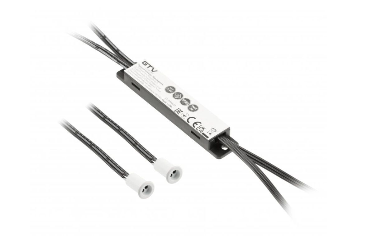 Выключатель бесконтактный MIKRO IR 2 12V/36W, 24V/72W, 2 датчика, кабели 2 м и 1,2 м, белый – устройство управления, посредством которого включается и выключается светильник. Прибор оснащен кабелями с двумя выносными сенсорами. Датчик срабатывает (включает свет) на открывание двери или выдвижение ящика.