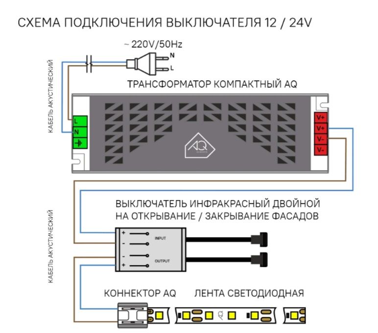 Двойной инфракрасный выключатель AQ разработан для управления освещением при открывании и закрывании двойных фасадов. Устройство оснащено инфракрасными датчиками, которые обеспечивают плавное включение и выключение подсветки.