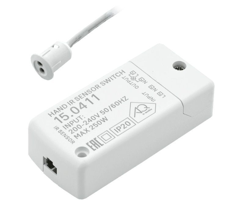 Выключатель инфракрасный имеет два режима работы на взмах руки и на открывание двери, с расстоянием срабатывания 5-8см.