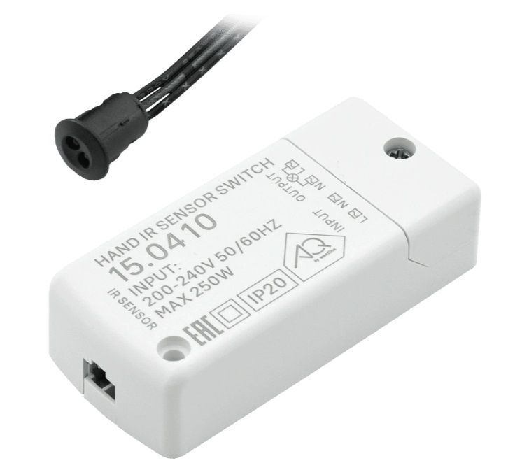 Выключатель инфракрасный имеет два режима работы на взмах руки и на открывание двери, с расстоянием срабатывания 5-8см.