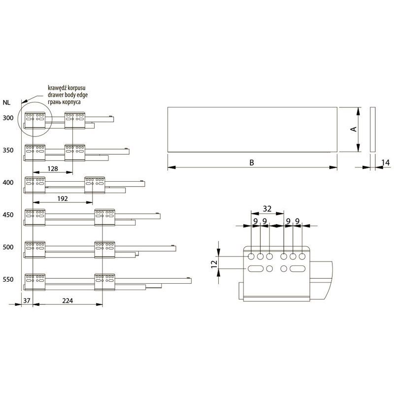 Максимальная вместимость ящика, достигнутая посредством нижнего монтажа направляющих и минимальной толщины боковых панелей.