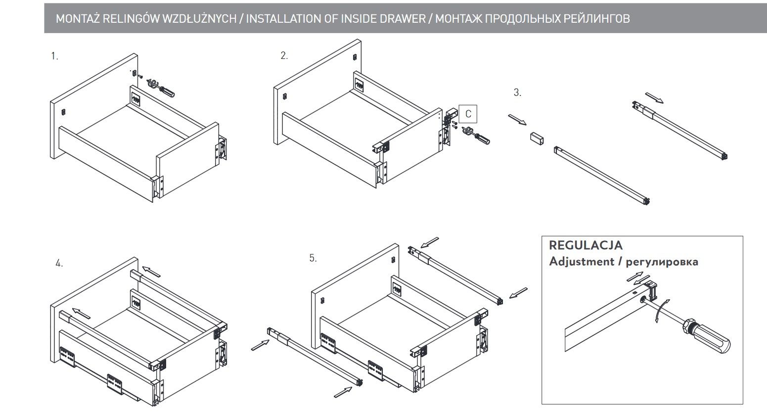 Рейлинг для AXIS PRO 500мм - прямоугольная продольная трубка, используемая для наращивания по высоте полезного пространства выдвижного ящика системы AXIS PRO.