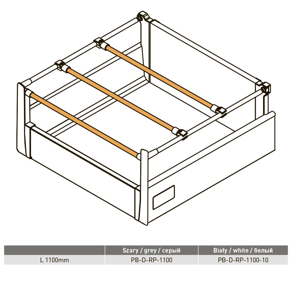 Релинг поперечный устанавливается на продольный релинг с помощью пластиковых креплений, служит для дополнительной организации внутреннего пространства.