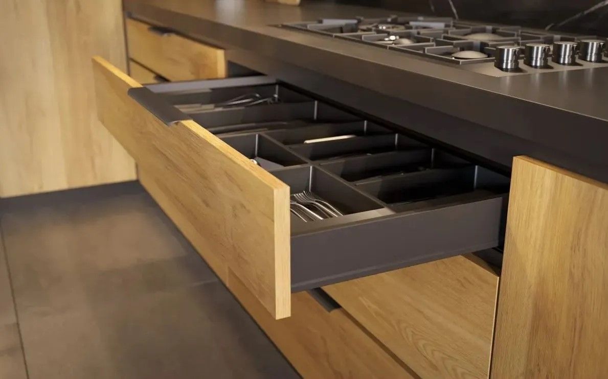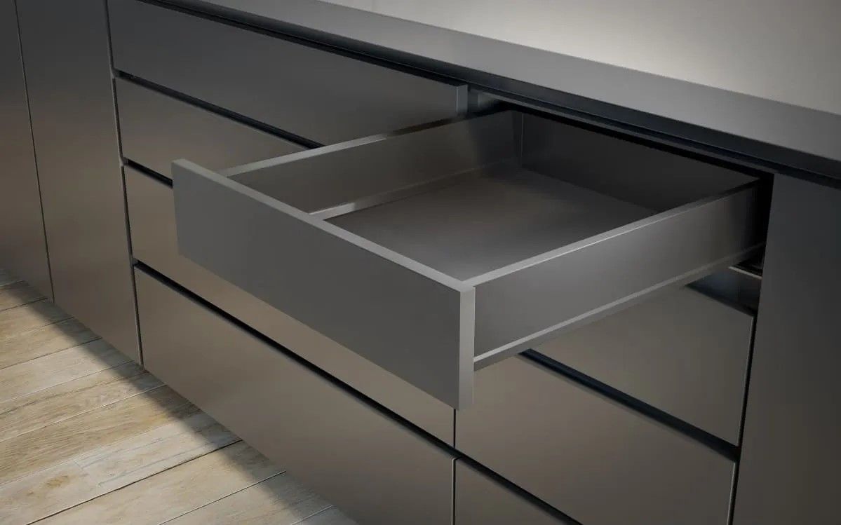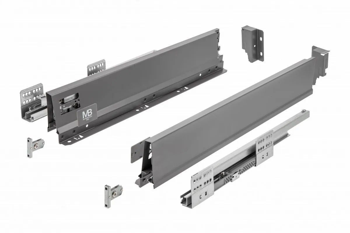 Модерн Бокс PRO L-350, низкий H-84 мм, антрацит - мебельная система выдвижения, представляющая собой набор из направляющих, боковых стенок и рейлингов, для сборки выкатного ящика. Модерн Бокс в первую очередь предназначен для кухонных гарнитуров, но также может быть использован в мебельных конструкциях другого назначения, где конструктивно предусмотрены выдвижные ящики. При проектировании мебельного изделия необходимо учесть техническое примечание от производителя; для правильной работы направляющей рекомендованная ширина ящика не должна превышать номинальной длины направляющей. Для данной модели номинальная длина направляющих = 350 мм. КОМПЛЕКТАЦИЯ Шариковая направляющая полновыкатная, левая - 1 шт. Шариковая направляющая полновыкатная, правая - 1 шт. Боковая панель, левая - 1 шт. Боковая панель, правая - 1 шт. Крепление фасада для левой боковой панели - 1 шт. Крепление фасада для правой боковой панели - 1 шт. Крепление задней стенки для левой боковой панели - 1 шт. Крепление задней стенки для правой боковой панели - 1 шт. Заглушки для монтажных отверстий. ПРЕИМУЩЕСТВА Полное выдвижение, обеспечивающее удобный доступ к содержимому ящика. Высокая нагрузка ящика, до 40 кг. Мягкое и тихое задвижение, благодаря доводчику. Сертификат SGS на 60 000 циклов. Регулировка фасада в вертикальной и горизонтальной плоскостях (+/- 1,5 мм). Функциональные элементы, используемые для регулировки, расположены на внутренней стороне боковины, то есть внутри ящика. Таким образом легче осуществлять регулировку, когда ящик расположен боковиной у стены. ВАЖНОЕ ДОПОЛНЕНИЕ В случае необходимости аксессуары для Модерн Бокса приобретаются отдельно.