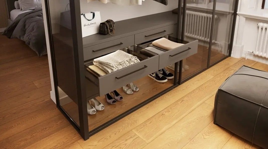 AXIS PRO L-300 мм, средний H-120 мм, со стеклянными боковинами, антрацит - мебельная система выдвижения, представляющая собой набор из направляющих, боковых стенок и креплений. В первую очередь данная система предназначена для гардеробных, но также может использоваться в ванных комнатах и в кухонных помещениях. КОМПЛЕКТАЦИЯ Шариковая направляющая полновыкатная, левая - 1 шт. Шариковая направляющая полновыкатная, правая - 1 шт. Боковая панель, левая - 1 шт. Боковая панель, правая - 1 шт. Крепление фасада для левой боковой панели - 1 шт. Крепление фасада для правой боковой панели - 1 шт. Крепление задней стенки для левой боковой панели - 1 шт. Крепление задней стенки для правой боковой панели - 1 шт. Заглушка для монтажных отверстий левой боковой панели - 1 шт. Заглушка для монтажных отверстий правой боковой панели - 1 шт. Саморезы для монтажа. ПРЕИМУЩЕСТВА Стеклянные боковины ящиков добавляют интерьеру необычный выразительный элемент. Мебельная конструкция воспринимается как более светлая и просторная. Плавное и бесшумное закрывание. Стильное дымчатое закаленное стекло. Полное выдвижение; легкий доступ к хранящимся в ящике вещам. Нагрузка до 40 кг. Сертификат испытаний на 60 000 рабочих циклов. Регулировка фасада по горизонтали (+/- 2,5 мм) и вертикали (+/- 2 мм). Дополнительная регулировка наклона фасада: +/- 2 мм. Функциональные элементы, используемые для регулировки, расположены на внутренней стороне боковины, то есть внутри ящика. Таким образом легче осуществлять регулировку, когда ящик расположен боковиной у стены. Техническое примечание от производителя: для правильной работы направляющей рекомендованная ширина ящика не должна превышать номинальной длины направляющей. ВАЖНОЕ ДОПОЛНЕНИЕ В случае необходимости изготовления внутреннего ящика, соответствующие аксессуары для AXIS PRO приобретаются отдельно.
