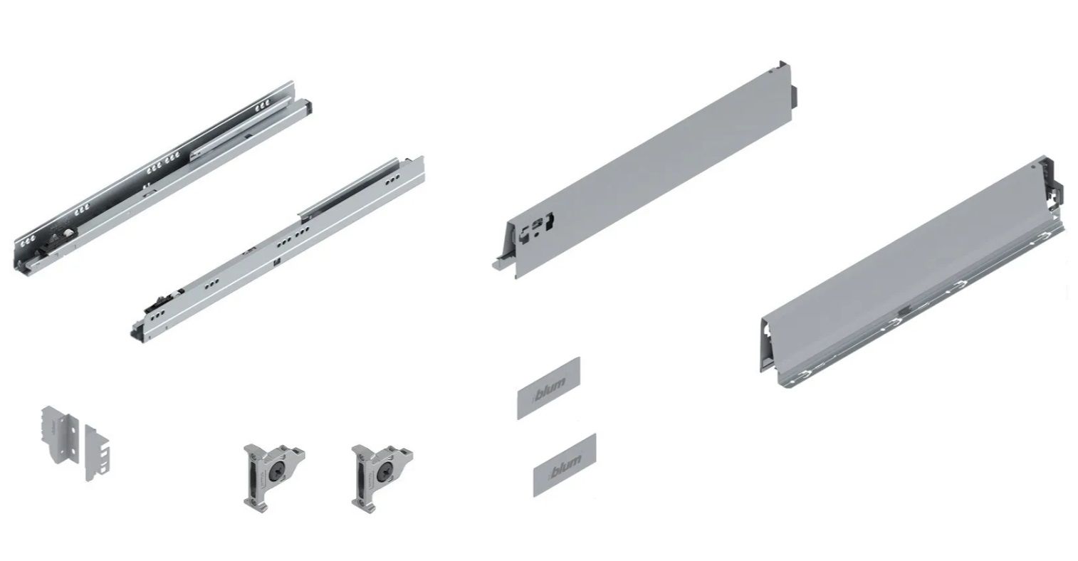 Выдвижной ящик BLUM TANDEMBOX antaro, L-500 мм, низкий M, серый - мебельная система выдвижения, представляющая собой набор из направляющих, боковых стенок и креплений для сборки выкатного ящика. Система предназначена для использования в кухонных гарнитурах, а также в шкафах и тумбах различного назначения, где конструктивно предусмотрены выдвижные ящики.