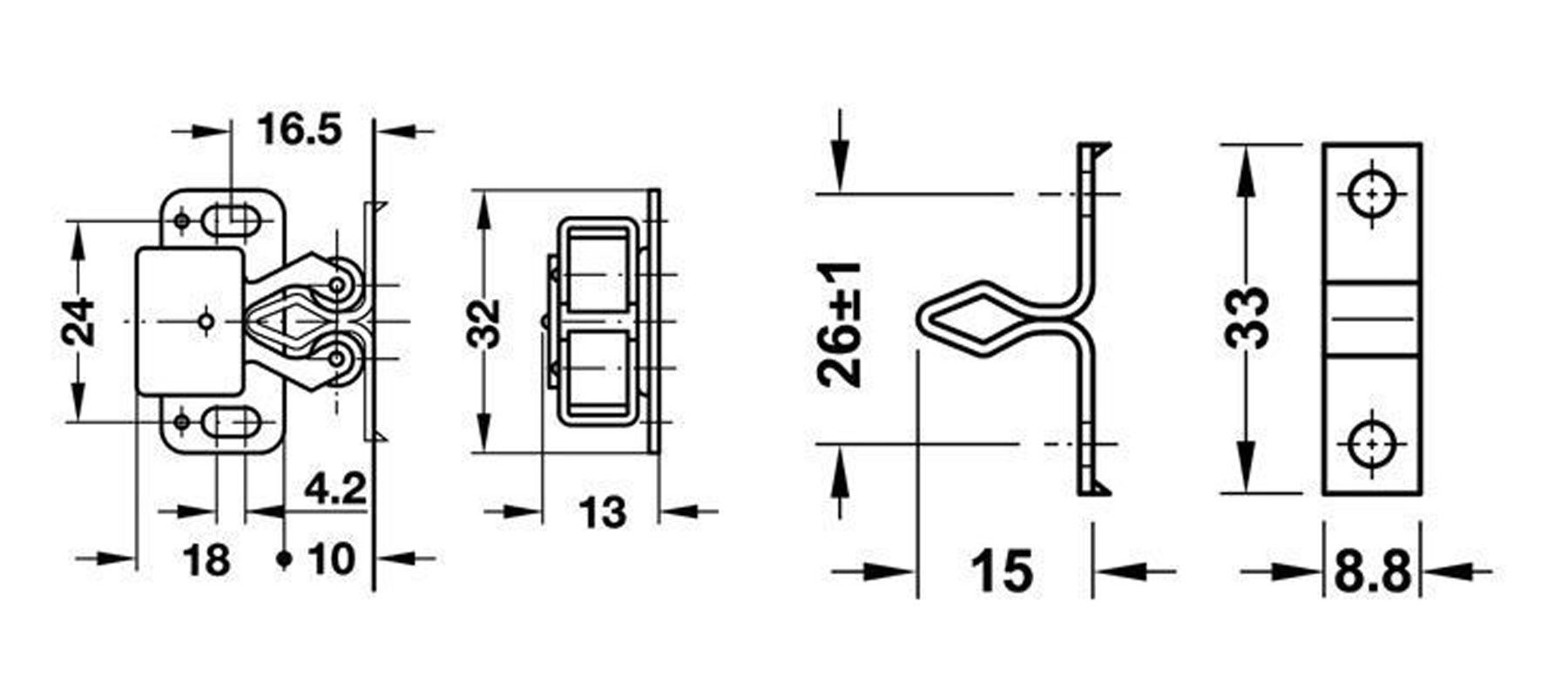 товара Защелка роликовая, никель матовый - мебельный фиксатор, препятствующий произвольному открыванию дверцы. Металлическая планка клиновидной формы крепится к внутренней стороне створки, а пружинный механизм устанавливается на боковину или верхнюю часть корпуса. КОМПЛЕКТАЦИЯ Роликовый фиксатор – 1 шт. Ответная планка – 1 шт. ВАЖНОЕ ДОПОЛНЕНИЕ Шурупы для монтажа приобретаются отдельно.