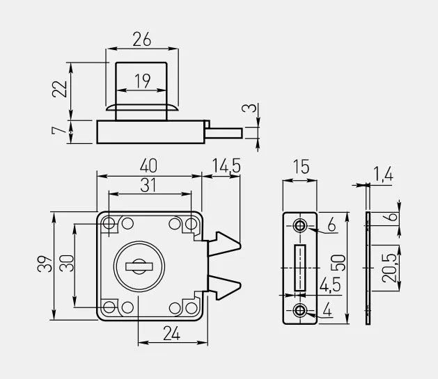 Замок мебельный №202 для жалюзи, металлический ключ - специальное устройство, используемое для фиксации жалюзи в закрытом состоянии, которые устанавливаются на мебельные конструкции. КОМПЛЕКТАЦИЯ Замок – 1 шт. Ответная планка – 1 шт. Ключ – 2 шт. ВАЖНОЕ ДОПОЛНЕНИЕ Для установки замка необходимо дополнительно приобрести крепеж – шурупы.