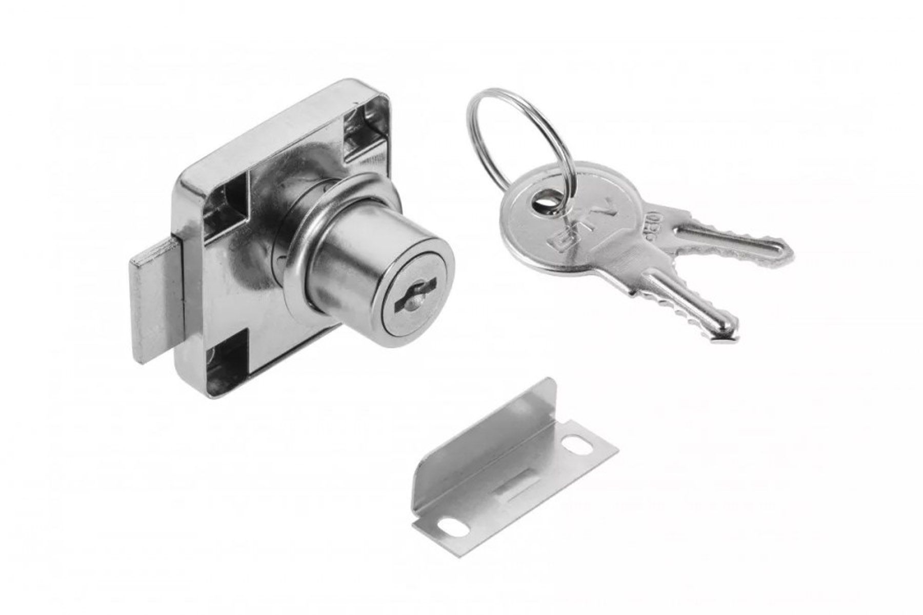 товара Замок мебельный №138 с планкой (простой металлический ключ) - устройство, служащее для запирания дверей и ящиков мебельных изделий. Фиксация в закрытом состоянии осуществляется посредством поворота ключа. КОМПЛЕКТАЦИЯ Замок – 1 шт. Ответная планка – 1 шт. Ключ – 2 шт. ВАЖНОЕ ДОПОЛНЕНИЕ Для установки замка необходимо дополнительно приобрести крепеж – шурупы.